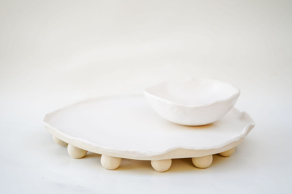 These bowls are perfect for a variety of snacks, from guacamole and salsa to hummus and olives, and can be used as a decorative 'catch all' pinch pot anywhere in your home or just on top of books on the coffee table for a pop of handmade. If you can bear to put it away, this is the second smallest bowl in the nesting set which fits into one another for a work of art or space saving storage. *shown in photo as larger bowl, smaller bowl is the dip size.
